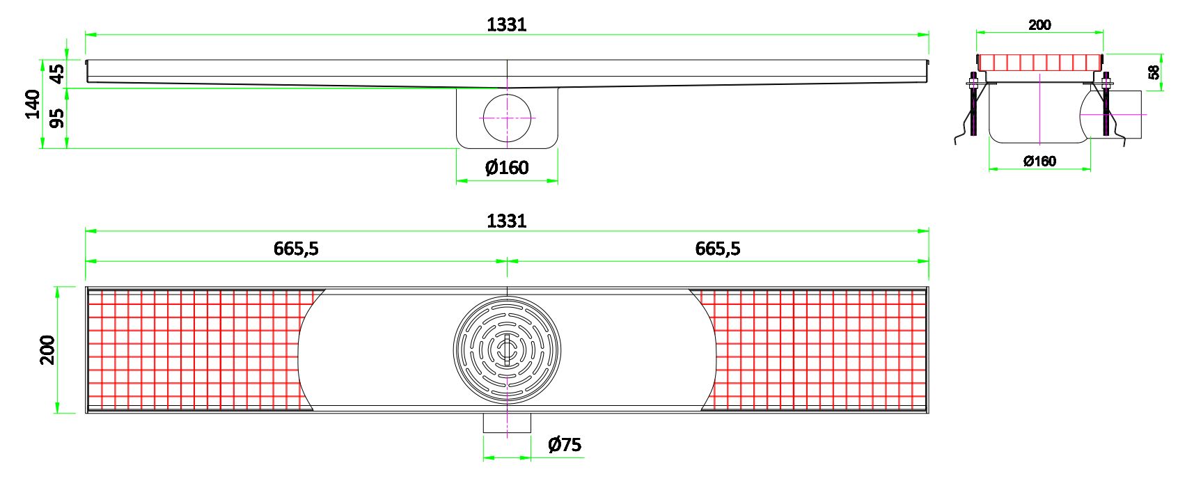 De Combisteel vloerput 1331×200 is een functionele oplossing voor een optimaal drainagesysteem en voorkomt dat water zich ophoopt op de werkvloer. Vloeistoffen kunnen direct wegstromen, waardoor u veiliger en hygiënischer werkt. De vloerput is vervaardigd uit duurzaam 304 roestvrij staal, wat het bestand maakt tegen vocht en chemische reinigingsmiddelen. Bovendien is het eenvoudig schoon te houden – ideaal voor omgevingen waar hygiëne en onderhoudsgemak belangrijk zijn. Dit model is uitgevoerd met een DN 70 horizontale afvoer, met een debiet van ca. 0,8 liter per seconde. De belastingsklasse is L15, geschikt voor voetgangersverkeer en rolwagens tot een maximum van 500 kg – ideaal voor toepassingen in industriële keukens. Afmetingen: 1331x200x140 mm – gewicht: 16 kg.
