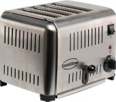 Deze professionele broodrooster is de perfecte keuze voor drukke ontbijtzalen, lunchrooms of zelfbedieningsbuffetten. Dankzij de ruimte voor 4 sneetjes brood en het efficiënte energieverbruik is hij ideaal voor snel en gelijkmatig roosteren. Met zijn robuuste en stijlvolle roestvrijstalen behuizing past hij moeiteloos in elke professionele keuken. De afmetingen zijn 290x260x220 mm (LxDxH) – verbruik 1.8 kW – gewicht 4 kg.