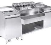 COCKTAIL BAR STATION INCL. SPOELBAK, GLAZENSPOELER, GN-BAKKEN, SPEEDRAIL VOOR FLESSEN, SNIJPLANK EN AFVALBAK
