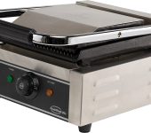 De contactgrill van Combisteel is dé ideale oplossing voor iedereen die perfect gegrilde gerechten wil bereiden, of je nu een horecagelegenheid runt, een foodtruck hebt of catering verzorgt. Deze robuuste en efficiënte grill is speciaal ontworpen voor professioneel gebruik en combineert kracht met veelzijdigheid. De geribde grillplaat is ideaal voor het bereiden van producten zoals panini’s, vlees, groenten of vis, met de kenmerkende grillstrepen. De afmetingen zijn 320x410x190 mm (LxDxH) – vermogen 1.8 kW – gewicht 14.5 kg.