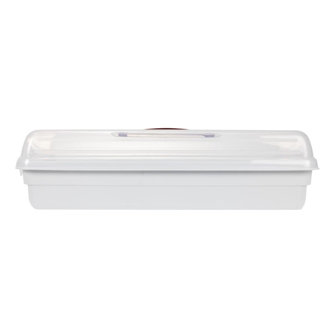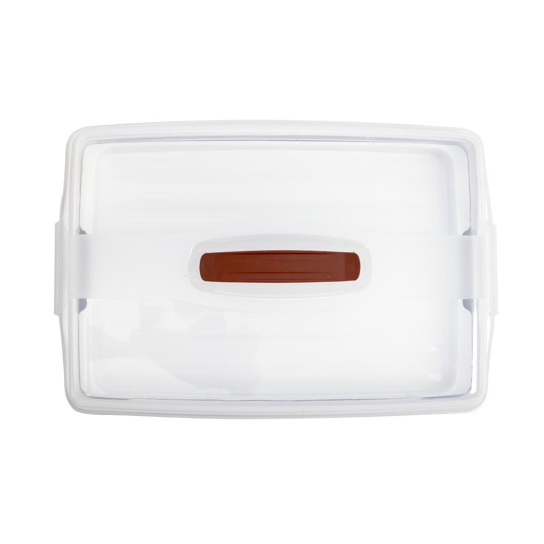 Transparante bewaardoos met kliksluiting en soft-grip handvat. Vaatwasserbestendig.