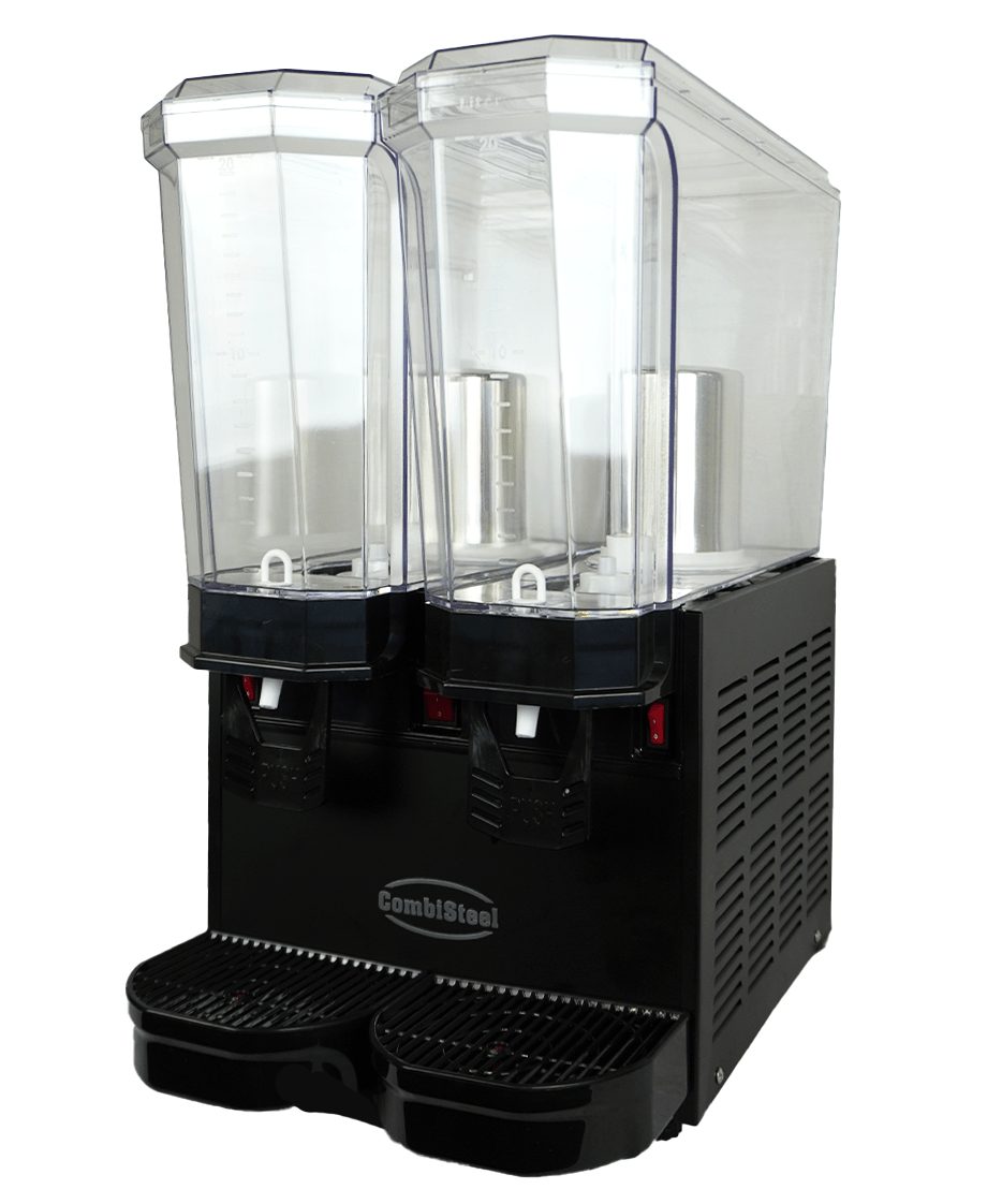 De Combisteel dranken-dispenser met een royale capaciteit van 2×20 liter is ideaal voor het gekoeld serveren van heldere dranken zoals water, limonade en vruchtensappen. Dankzij de dubbele tank kun je gemakkelijk twee verschillende dranken gelijktijdig aanbieden. Het compacte ontwerp met zwarte behuizing past perfect in elke horecaomgeving, bar of buffet. De dispenser werkt handmatig en is voorzien van een lekbak voor een nette werkplek. Afmetingen: 365x520x665 mm (BxDxH) – verbruik 0,75 kW – temperatuurbereik +5/+10ºC – gewicht 35 kg.