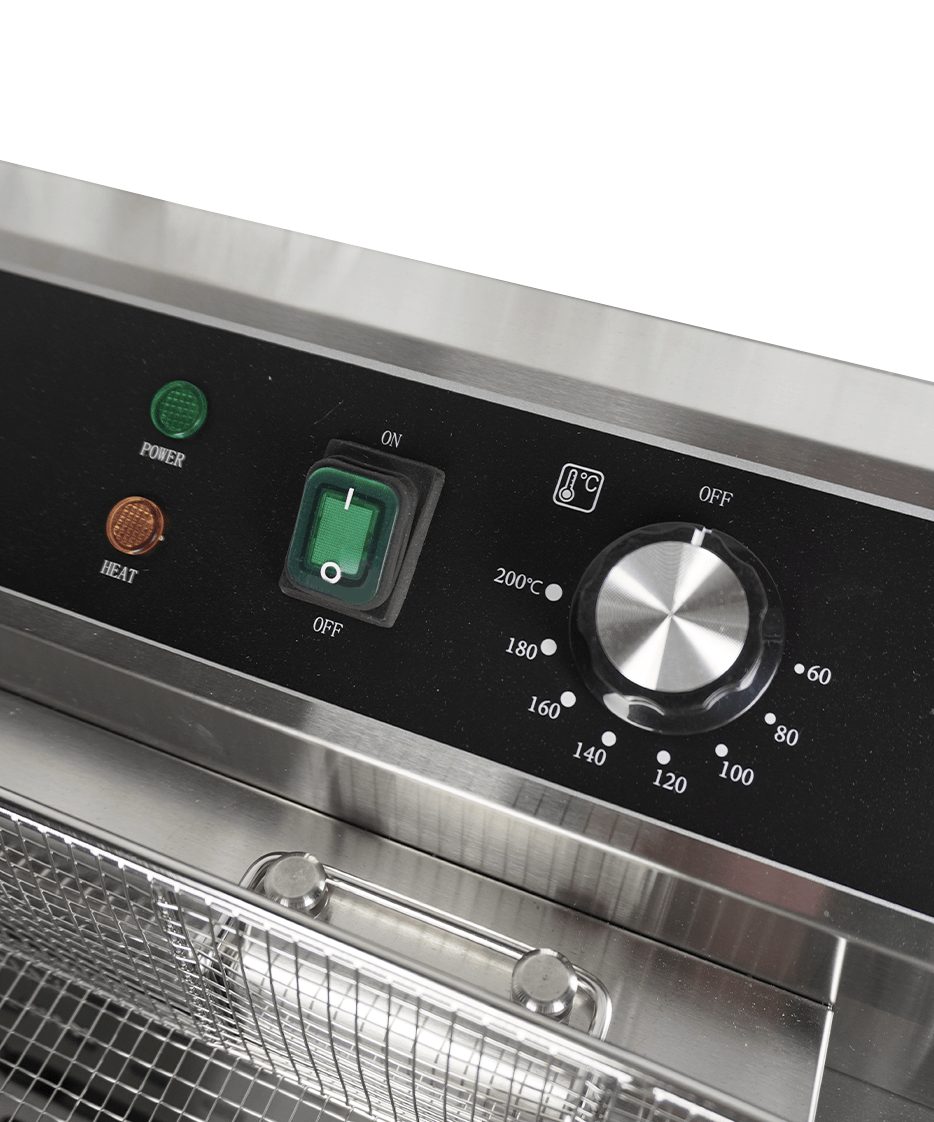 Serveer knapperige, perfect gebakken gerechten met ons betrouwbare elektrische tafelmodel friteuse. Ideaal voor horecagelegenheden of evenementen waar snelheid, capaciteit en kwaliteit van cruciaal belang zijn.
