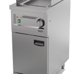 De Combisteel Entry Line 700 bakplaat is de ideale aanvulling op jouw elektrische kooklijn. Met een robuuste RVS behuizing en een verchroomd, glad bakoppervlak van 282×447 mm combineert deze bakplaat duurzaamheid met eenvoudige reiniging. Dankzij het vermogen van 2,7 kW levert hij snelle, gelijkmatige warmte voor perfecte resultaten – en dat op een energiezuinige manier. De bakplaat is uitgerust met een aan/uit schakelaar en gebruiksvriendelijke draaiknop, waarmee je de temperatuur nauwkeurig regelt. De geïntegreerde vetopvangbak zorgt voor hygiënisch en schoon werken. Afmetingen: 400x700x980 mm (BxDxH) – Spanning: 400V – Vermogen: 2,7 kW – Temp. bereik: +180/+250°C – Gewicht: 44 kg.