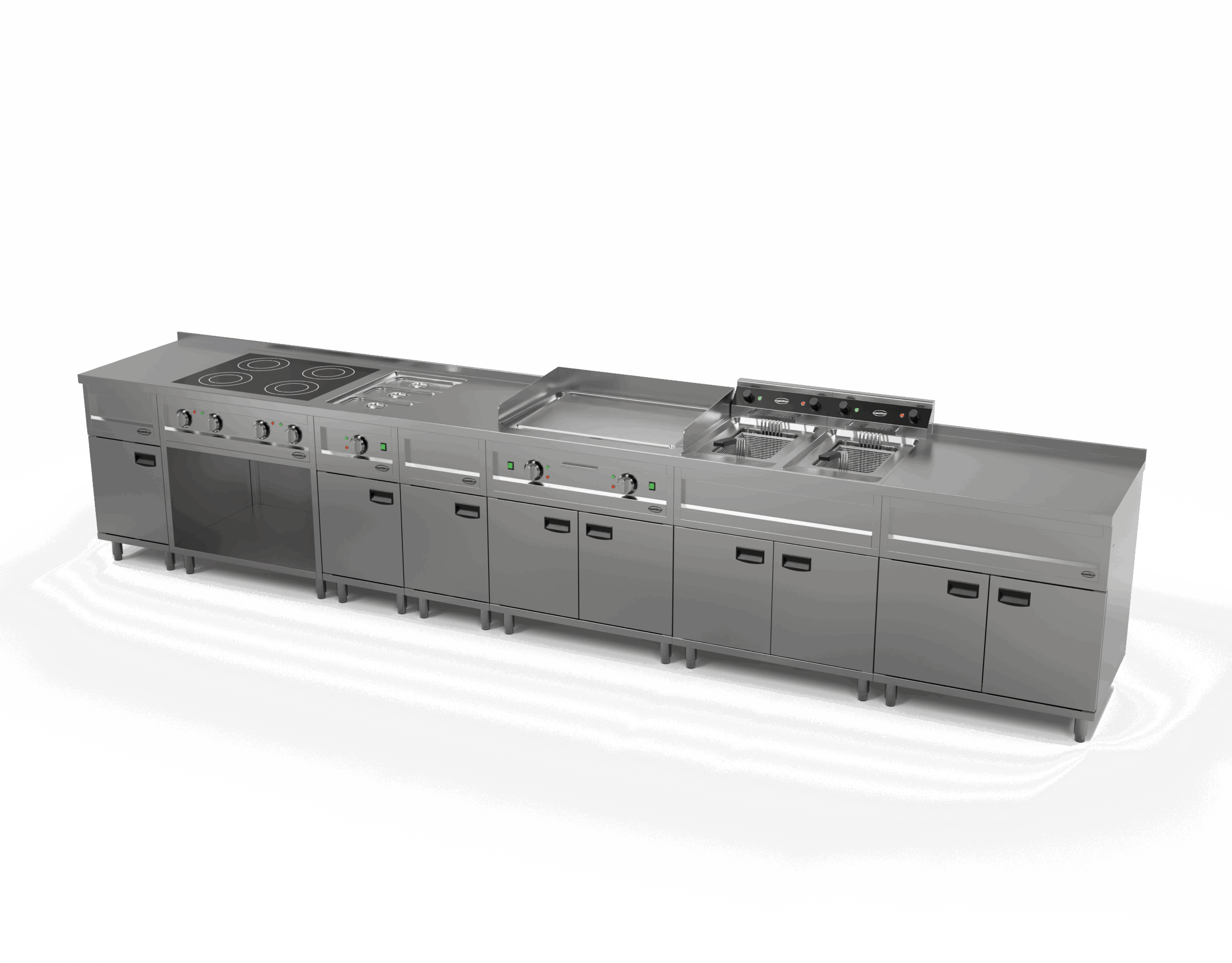 - Eenvoudige integratie: perfect te combineren met de inductiefornuis, bakplaat, bain-marie en friteuse