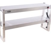 Deze demontabele étagère is de perfecte oplossing voor het presenteren en warmhouden van je lekkernijen in elke professionele setting. Met twee niveaus en twee lampen per niveau biedt deze étagère een gelijkmatige en efficiënte verwarming, waardoor gerechten op de juiste temperatuur blijven. Het temperatuurbereik van 60-70 graden zorgt ervoor dat je voedsel op de ideale temperatuur wordt gehouden, zonder in te boeten op smaak en kwaliteit. Met de twee stekkers is het apparaat eenvoudig aan te sluiten en te gebruiken. De afmetingen zijn 1200x300x650 mm (LxDxH) – verbruik 1.8 kW – temp. +60/+70ºC – gewicht 16 kg.