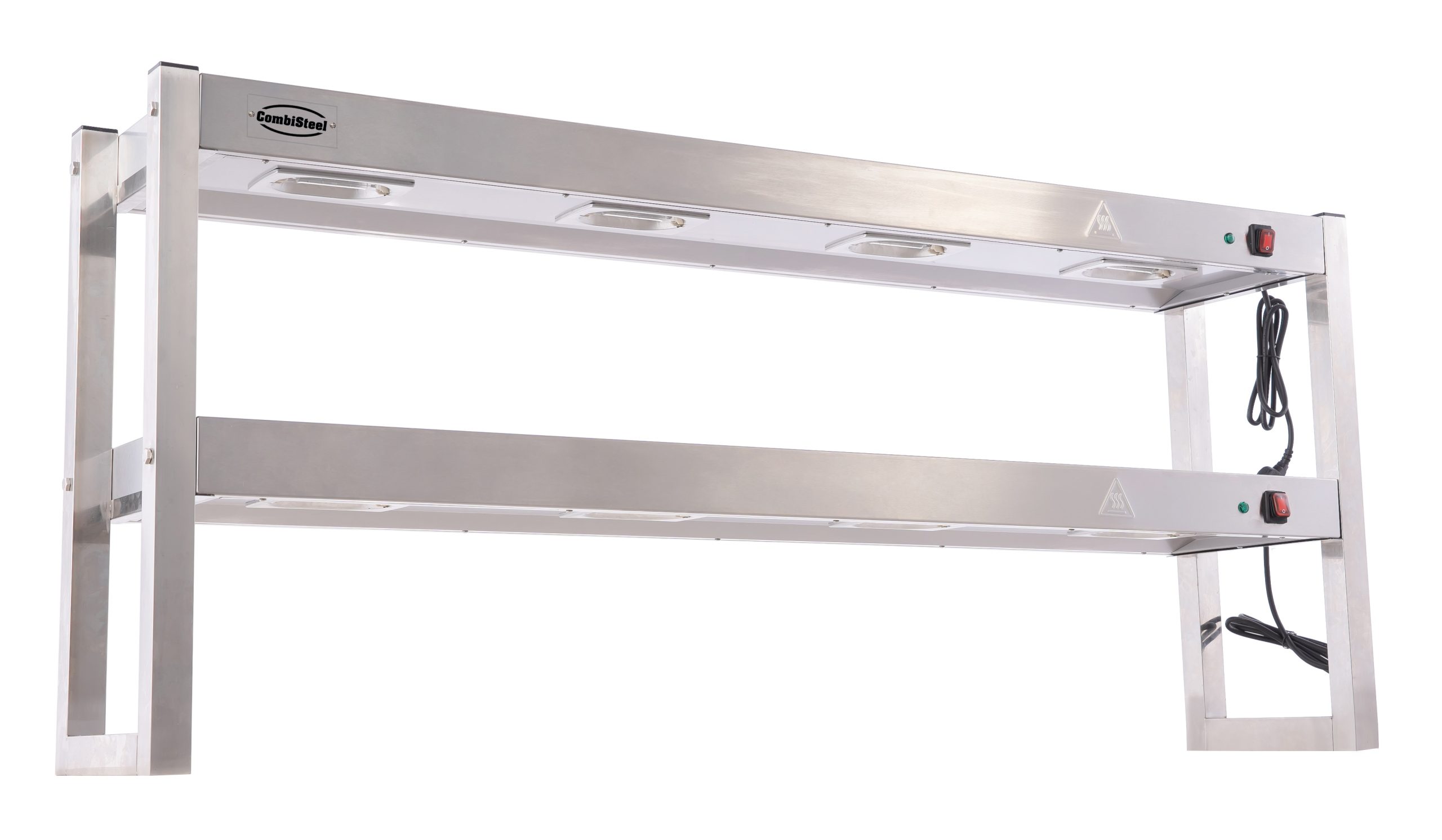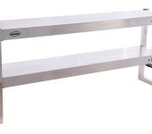 Deze demontabele étagère is de perfecte oplossing voor het presenteren en warmhouden van je lekkernijen in elke professionele setting. Met twee niveaus en twee lampen per niveau biedt deze étagère een gelijkmatige en efficiënte verwarming, waardoor gerechten op de juiste temperatuur blijven. Het temperatuurbereik van 60-70 graden zorgt ervoor dat je voedsel op de ideale temperatuur wordt gehouden, zonder in te boeten op smaak en kwaliteit. Met de twee stekkers is het apparaat eenvoudig aan te sluiten en te gebruiken. De afmetingen zijn 1500x300x650 mm (LxDxH) – verbruik 2.4 kW – temp. +60/+70ºC – gewicht 19 kg.