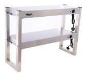 Deze demontabele étagère is de perfecte oplossing voor het presenteren en warmhouden van je lekkernijen in elke professionele setting. Met twee niveaus en twee lampen per niveau biedt deze étagère een gelijkmatige en efficiënte verwarming, waardoor gerechten op de juiste temperatuur blijven. Het temperatuurbereik van 60-70 graden zorgt ervoor dat je voedsel op de ideale temperatuur wordt gehouden, zonder in te boeten op smaak en kwaliteit. Met de twee stekkers is het apparaat eenvoudig aan te sluiten en te gebruiken. De afmetingen zijn 900x300x650 mm (LxDxH) – verbruik 1.2 kW – temp. +60/+70ºC – gewicht 12 kg.
