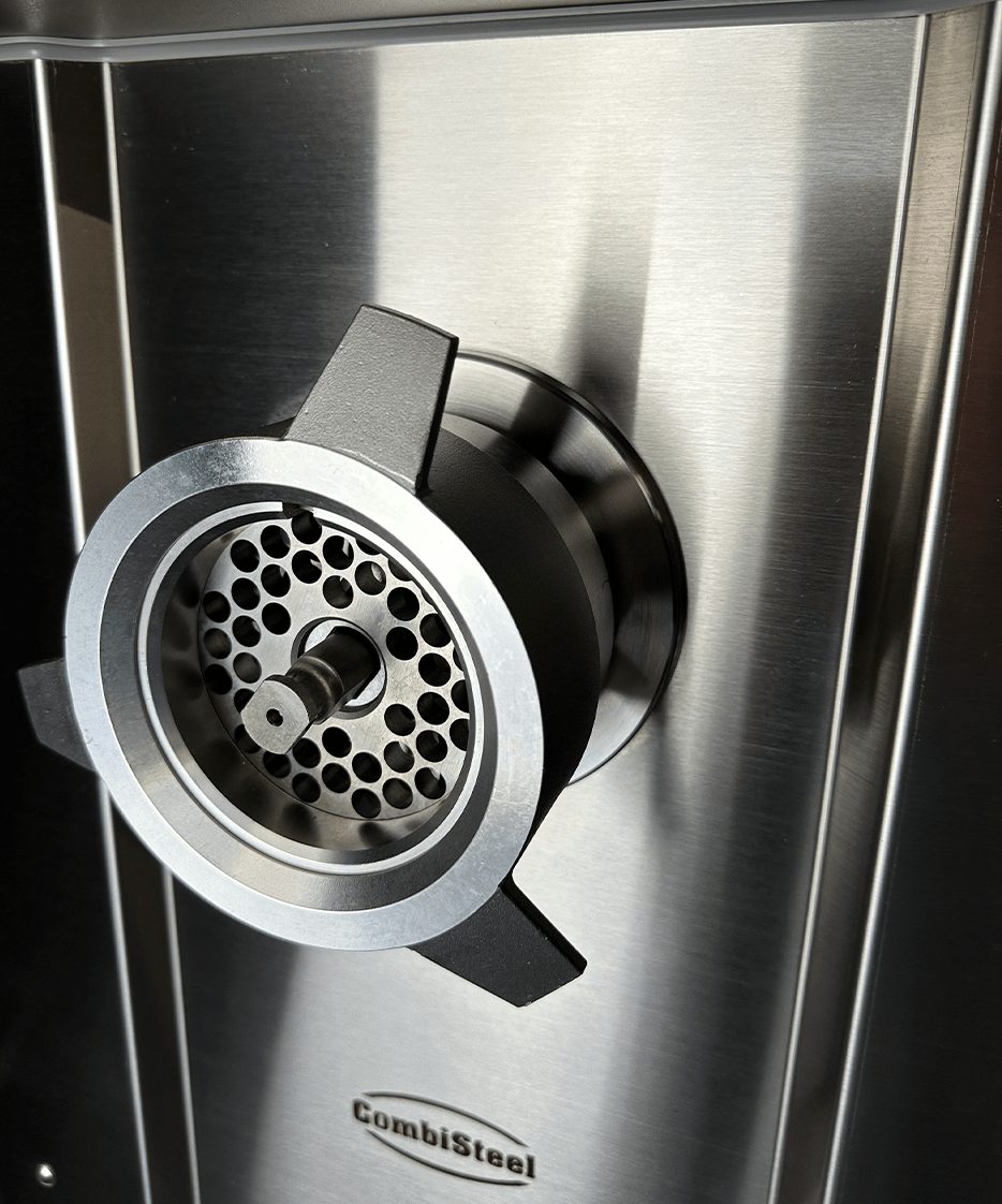 De verrijdbare gehaktmolen van Combisteel is dé perfecte oplossing voor het snel en efficiënt verwerken van vlees, of je nu werkt in een slagerij, restaurant of cateringbedrijf. Deze gehaktmolen combineert kracht, gebruiksgemak, duurzaamheid en mobiliteit om aan de eisen van elke professionele keuken te voldoen. Met zijn stevige roestvrijstalen behuizing, krachtige 400V-aansluiting, een mes met een diameter van 320 mm en de handige wieltjes voor eenvoudig verplaatsen, is deze gehaktmolen een betrouwbare en veelzijdige keuze voor dagelijks gebruik. Afmetingen: 566x520x636 mm (LxDxH) – vermogen 1,5 kW – capaciteit: 500 kg per uur – gewicht: 65 kg.