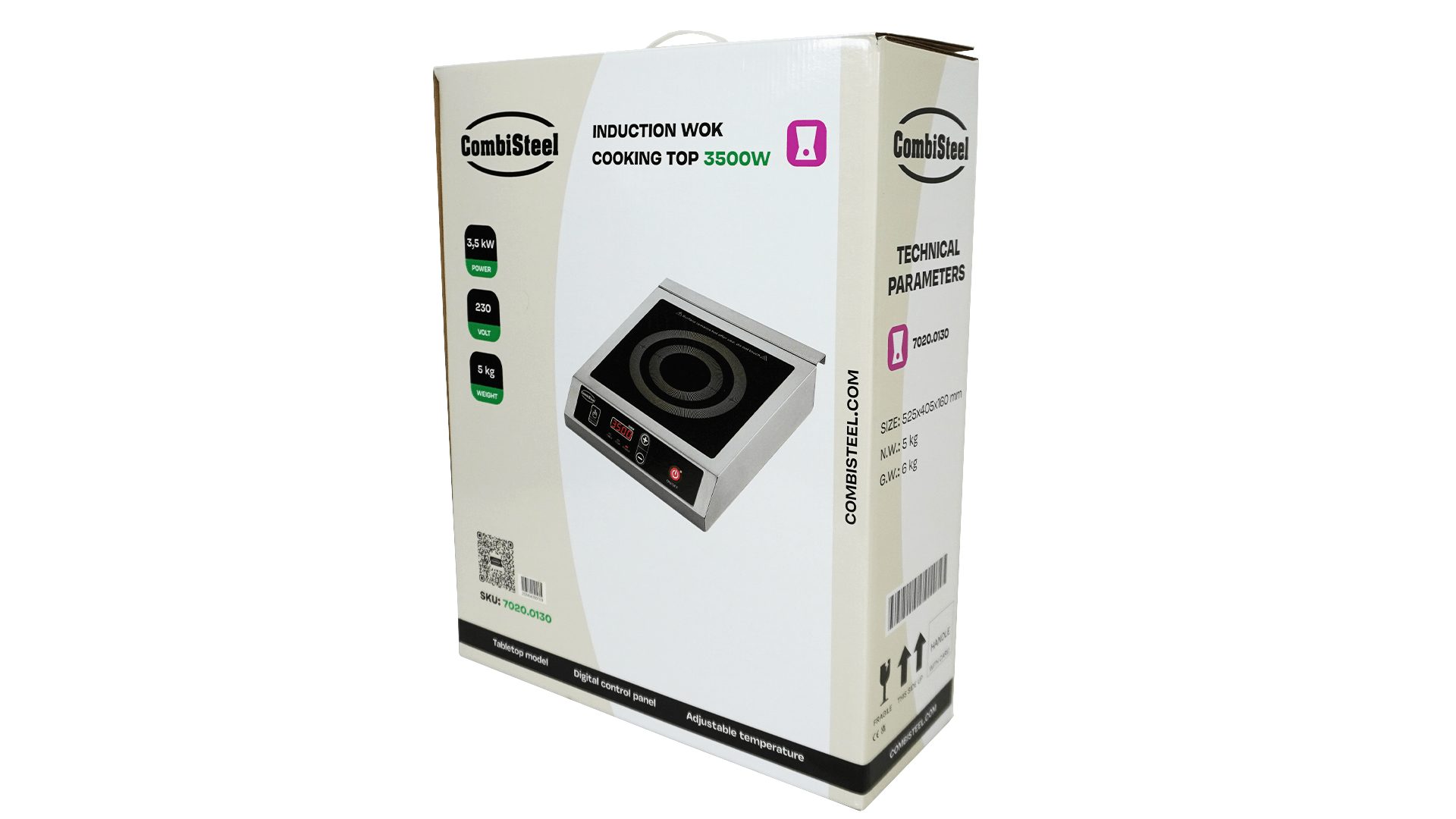 Deze handige Combisteel inductiekookplaat kun je overal gebruiken. Niet alleen in een restaurantkeuken, maar ook op buffetten of evenementen kun je goed uit de voeten met deze handige inductie unit. Dankzij zijn compacte formaat kun je deze kookplaat makkelijk kwijt of meenemen, maar heeft hij wel het vermogen om de lekkerste gerechten te bereiden. Daarnaast ziet hij er ook nog eens verfijnd uit. De afmetingen zijn 340x440x117mm (LxDxH) – minimum en maximum diameter pan 120/280mm – verbruik 0.5-3.5 kW – temp. +60/+240ºC – gewicht 15 kg.