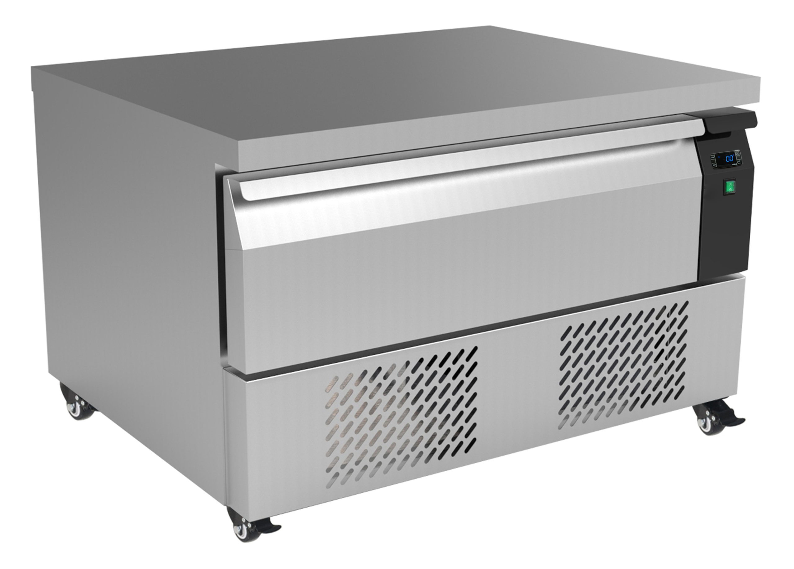 Deze compacte, maar krachtige koel-/vrieswerkbank met 1 lade is ideaal voor professionele keukens waar efficiëntie en flexibiliteit voorop staan. Elke lade is afzonderlijk instelbaar als koelkast of vriezer en beschikt over een eigen digitale bediening. De werkbank heeft een stevig, hittebestendig werkblad en is uitgevoerd in Amerikaanse maten. Dankzij het verrijdbare ontwerp en de mogelijkheid om strak tegen de wand te plaatsen, benut je de beschikbare ruimte optimaal. Voorzien van geventileerde koeling en automatische ontdooiing – voor stabiele prestaties met minimaal onderhoud. Ladeformaat: 2x 1/1 GN, geschikt voor een maximale hoogte van 150 mm. Afmetingen: 905x700x600 mm – Vermogen: 0,24 kW – Inhoud: 78 liter – Temperatuur: +1/+4ºC of -18/-21ºC – Gewicht: 72 kg.