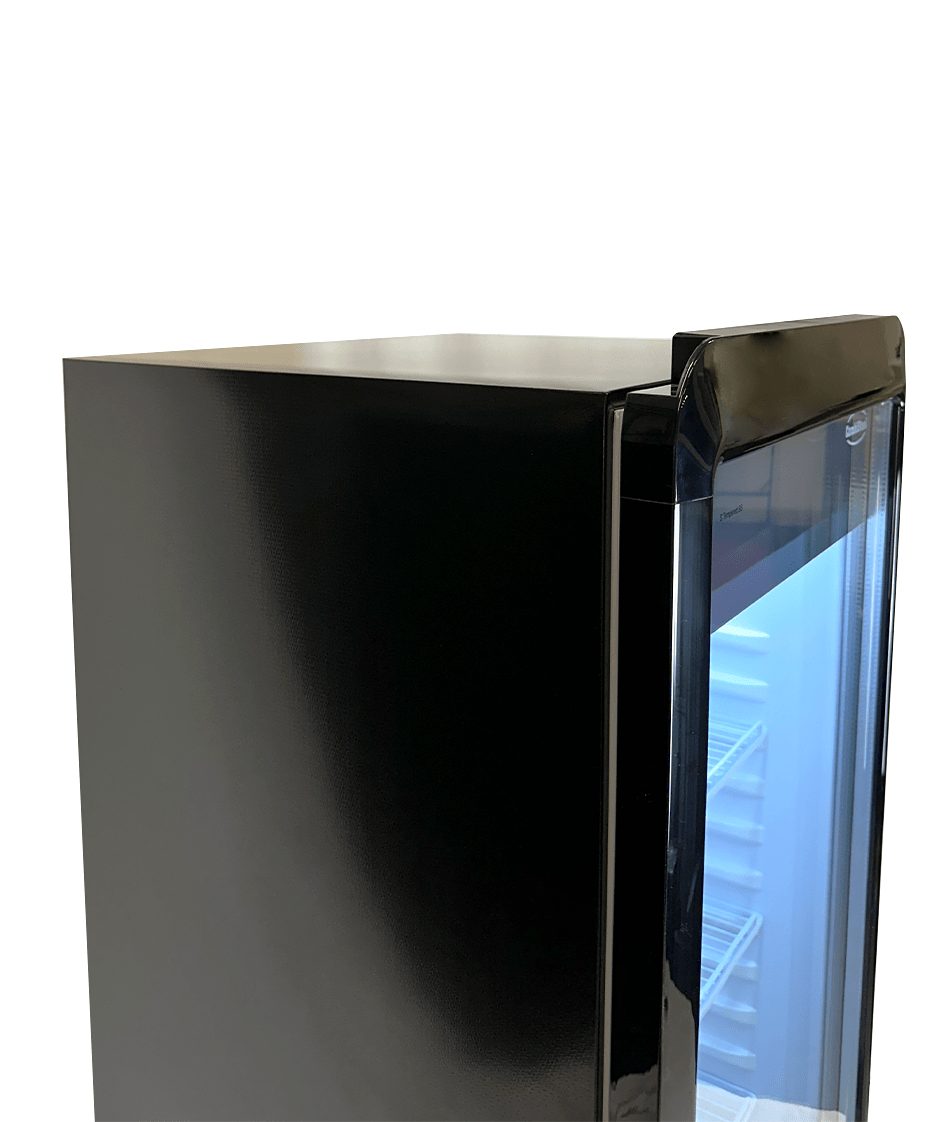 Ontdek onze elegante en praktische zwarte glasdeurkoelkast PIB-280R met 1 deur!