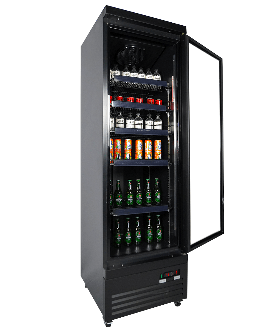Maak kennis met onze indrukwekkende zwarte koeling met 1 glasdeur, speciaal ontworpen voor supermarkten en professionele instellingen!