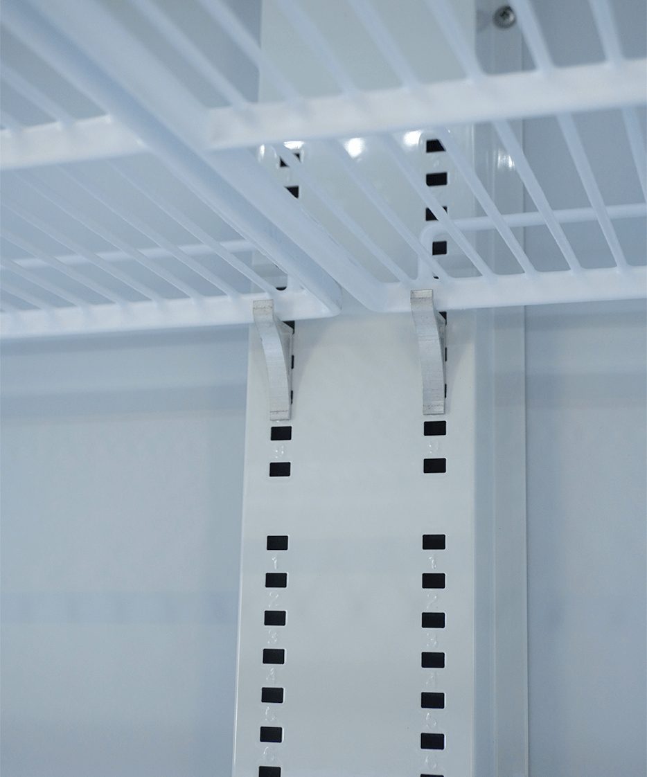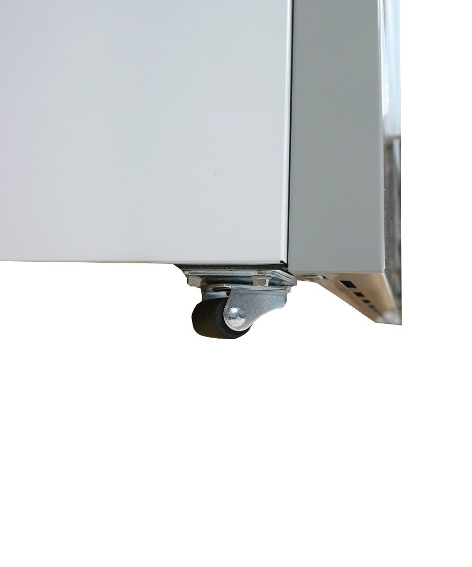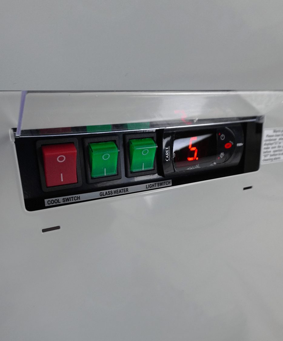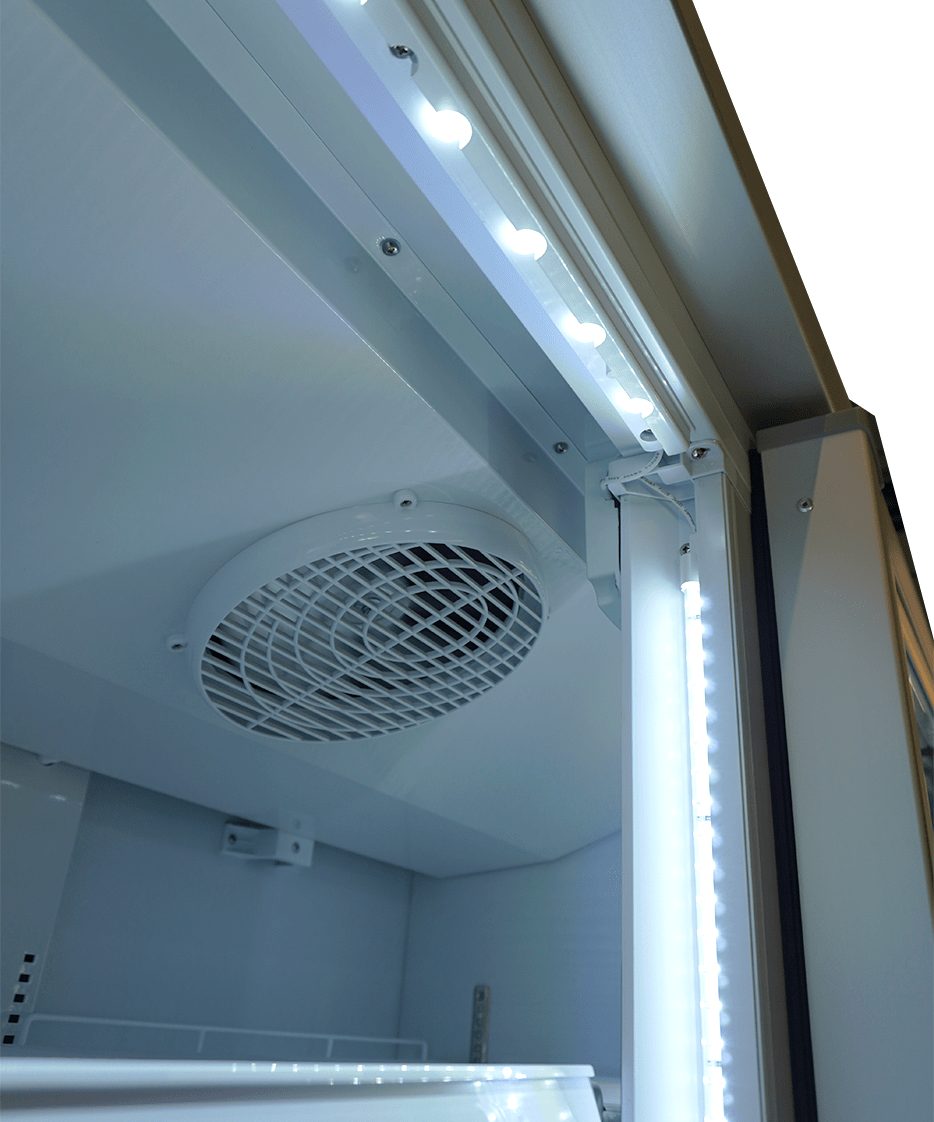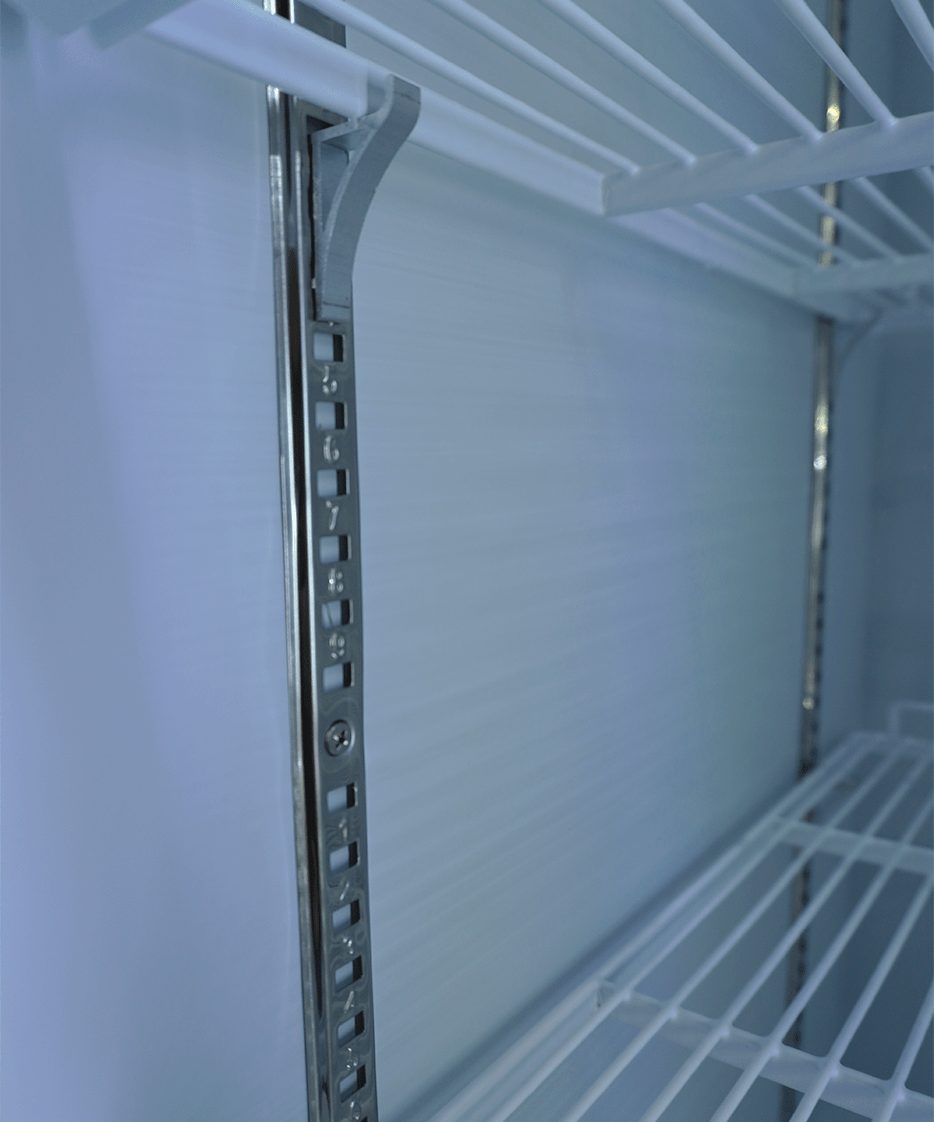 Deze koelkast heeft een moderne uitstraling, zelf sluitende deuren, verstelbare schappen en digitale temperatuur aflezing. Het geventileerde koelsysteem zorgt voor efficiënte koeling, terwijl automatische ontdooiing het onderhoud minimaliseert. De LED-verlichting verlicht je producten optimaal en de deurverwarming voorkomt condensvorming, eenvoudig in- of uit te schakelen. De afmetingen zijn 1253x710x1997 mm (LxDxH) – verbruik 0.33 kW – inhoud 1000 liter – temp. 0/+10ºC – gewicht 197 kg.
