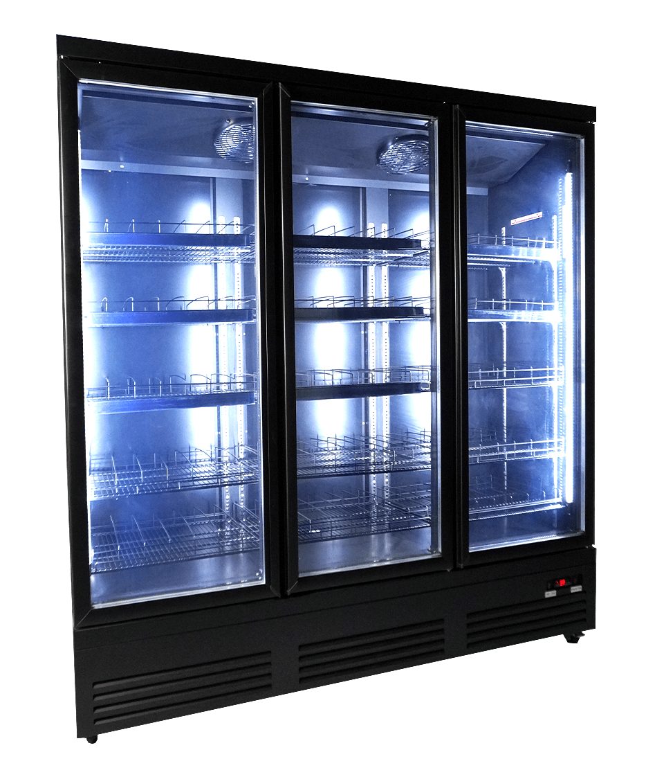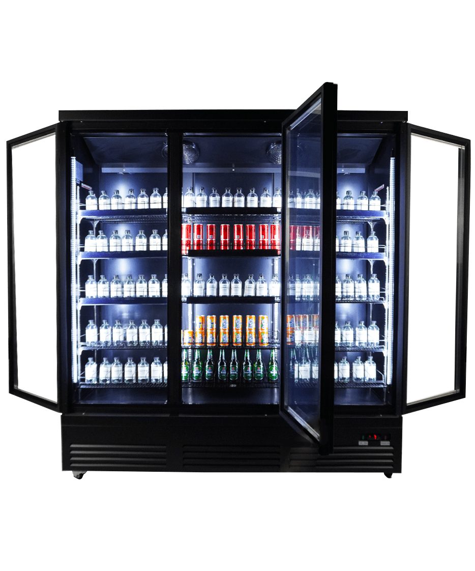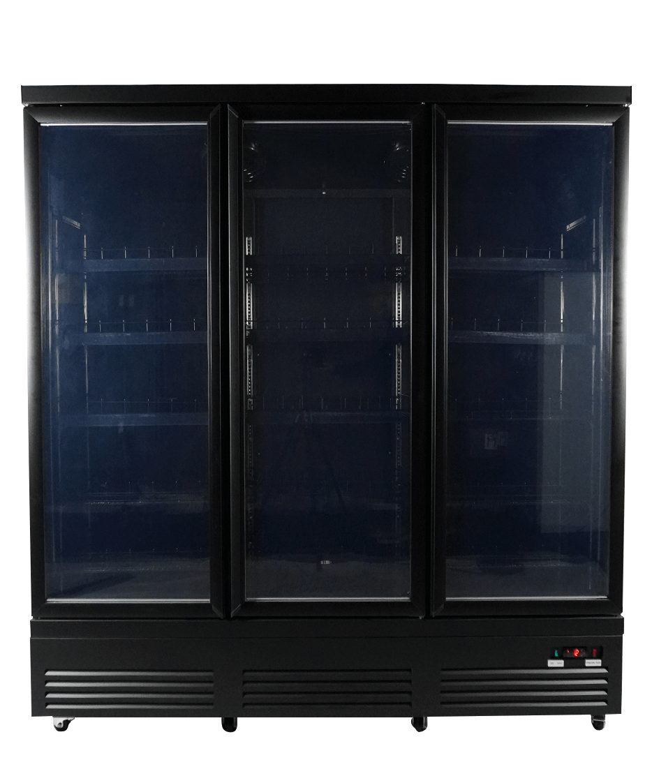 Maak kennis met onze indrukwekkende zwarte koeling met 3 glasdeuren, speciaal ontworpen voor supermarkten en professionele instellingen!