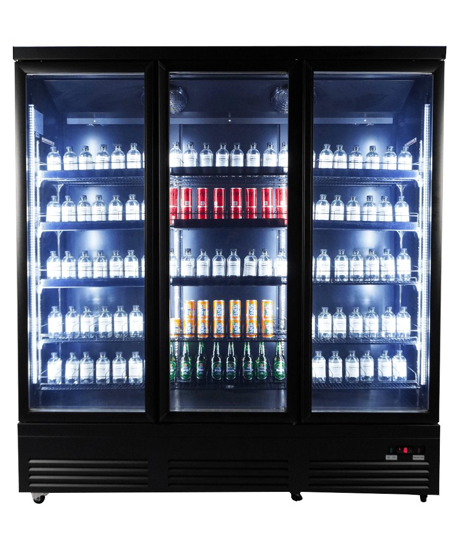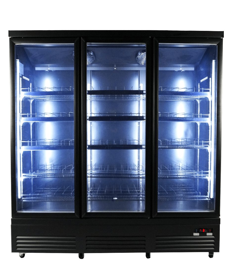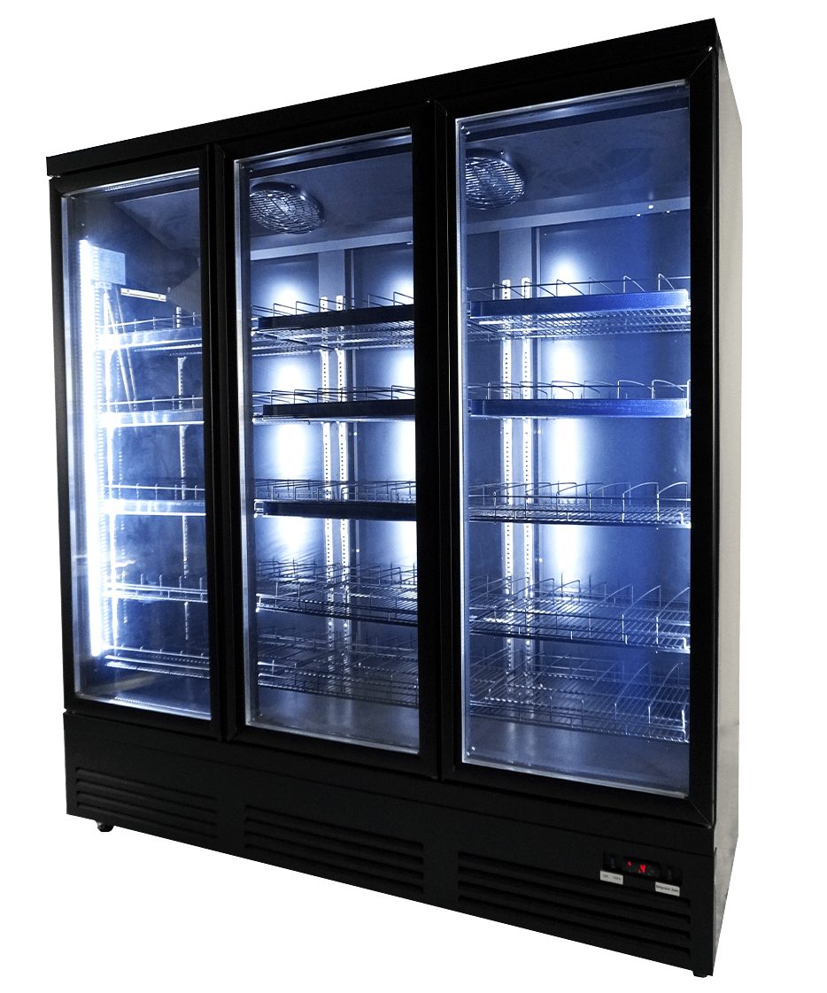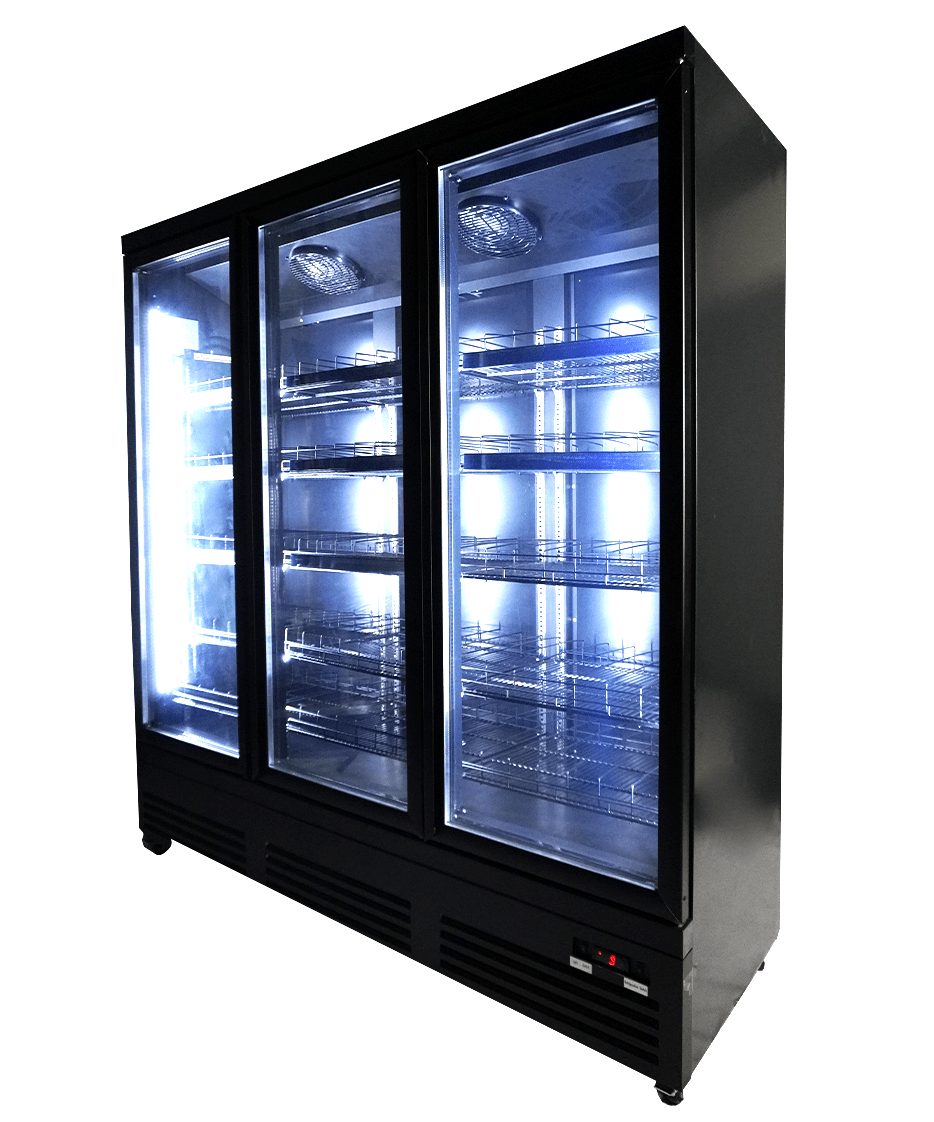 Maak kennis met onze indrukwekkende zwarte koeling met 3 glasdeuren, speciaal ontworpen voor supermarkten en professionele instellingen!