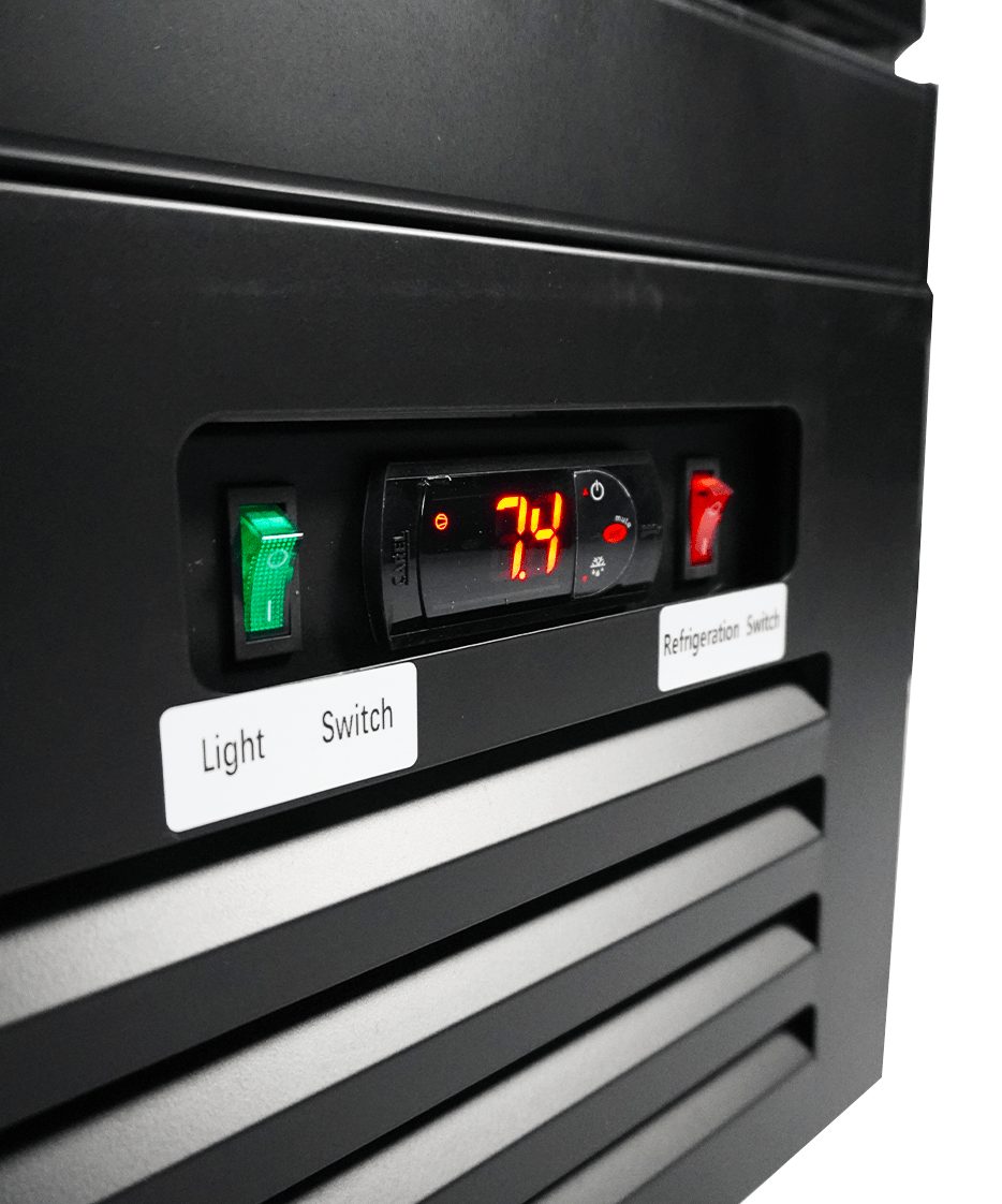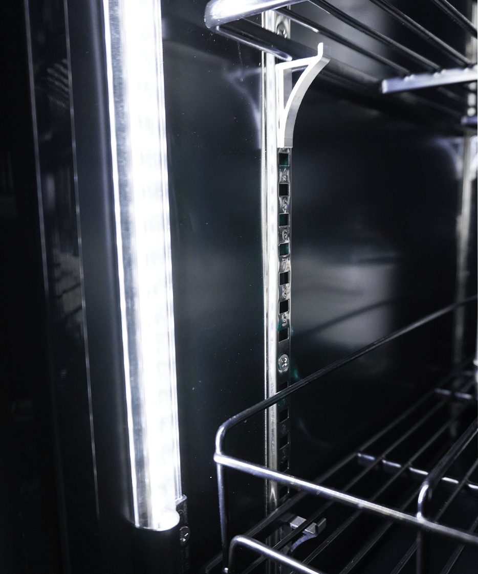Deze zwarte koelkast heeft een moderne uitstraling, zelf sluitende deur, verstelbare schappen en digitale temperatuur aflezing. Het geventileerde koelsysteem zorgt voor efficiënte koeling, terwijl automatische ontdooiing het onderhoud minimaliseert. De LED-verlichting verlicht je producten optimaal en de deurverwarming voorkomt condensvorming, eenvoudig in- of uit te schakelen. De afmetingen zijn 1880x705x2050mm (LxDxH) – verbruik 1.08 kW – inhoud 1600 liter – temp. 0/+10ºC – gewicht 214 kg.