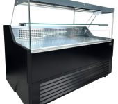 Deze zwarte koelvitrine met modern design is ideaal om jouw producten perfect te presenteren en te koelen. Uitgerust met heldere LED-verlichting zet hij je producten op een schitterende manier in de schijnwerpers, terwijl het geforceerde koelsysteem zorgt voor een constante, gelijkmatige temperatuur. Met een royaal etaleeroppervlak van 2.52 m², biedt de koelvitrine voldoende ruimte om een breed scala aan producten tentoon te stellen. De afmetingen zijn 2590x902x1230 mm (LxDxH) – verbruik 0.54 kW – inhoud 208 liter – temp. 0/+7ºC – gewicht 250 kg.