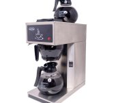 Deze koffiemachine is ideaal voor zowel drukke ochtenden als voor gezellige koffiepauzes. Met twee bijgeleverde koffiekannen, elk met een inhoud van 1,8 liter, kun je eenvoudig twee volle kannen koffie zetten voor grotere groepen of verschillende smaken serveren. Perfect voor kantoren, cafés of thuisgebruik. De machine is ontworpen om eenvoudig te bedienen te zijn en levert consistent heerlijke koffie met een vol aroma. De afmetingen zijn 205x405x455 mm (LxDxH) – verbruik 2.02 kW – gewicht 8 kg.