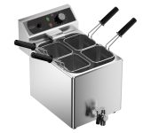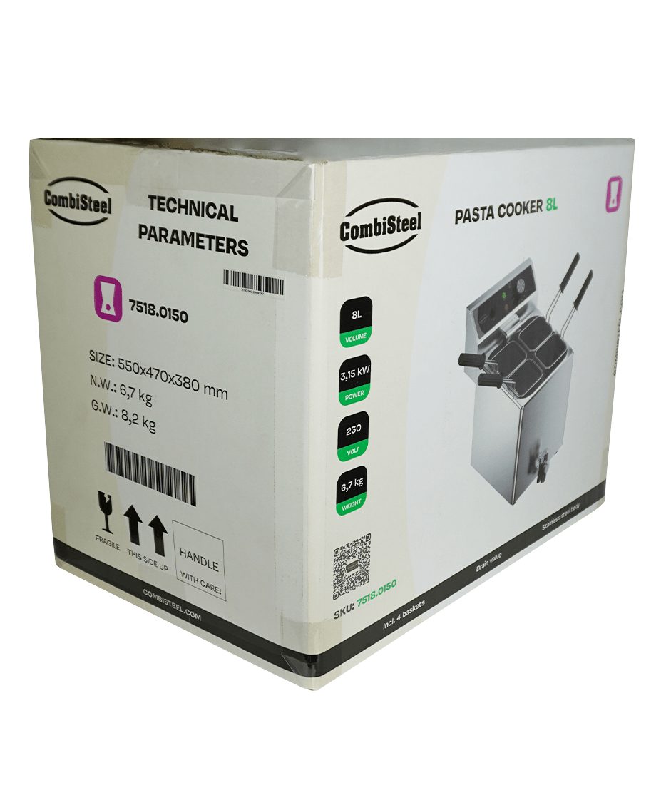Ons tafelmodel elektrische pastakoker is de perfecte aanvulling op elke keuken, of je nu een professionele chef bent of een enthousiaste thuiskok. Deze pastakoker biedt de ultieme oplossing voor het snel en efficiënt bereiden van al je favoriete pastagerechten. Dankzij het robuuste en compacte ontwerp kun je de pastakoker eenvoudig integreren in je keuken of meenemen naar cateringklussen. De afmetingen zijn 550x470x380mm (LxDxH) – capaciteit 8 liter – verbruik 3.15 kW – temp. 30-110ºC – gewicht 6.7 kg.