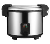 Deze rijstkoker is de perfecte keuze voor gezinnen, kantoren, restaurants of andere gelegenheden waar regelmatig rijst op het menu staat. Met een eenvoudig bedieningssysteem en een royale capaciteit, kook je moeiteloos de perfecte rijst. Dankzij de warmhoudfunctie blijft de rijst altijd op de ideale temperatuur, zonder dat je er naar om hoeft te kijken. De afmetingen zijn 480x360x350 mm (LxDxH) – verbruik 1.95 kW – gewicht 9.2 kg.