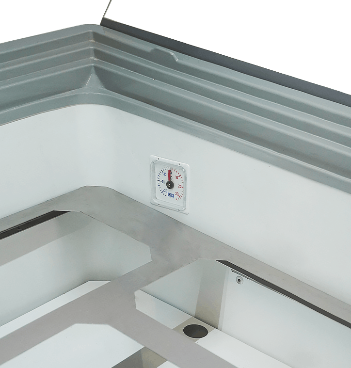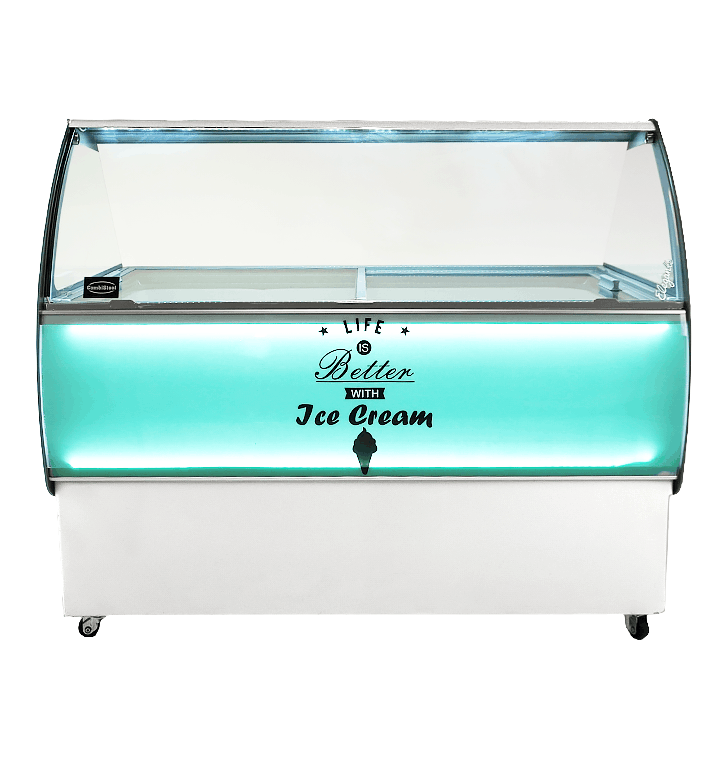 - LED-verlichting: energiebesparende verlichting van de vitrine, waardoor de ijssoorten aantrekkelijk worden gepresenteerd.