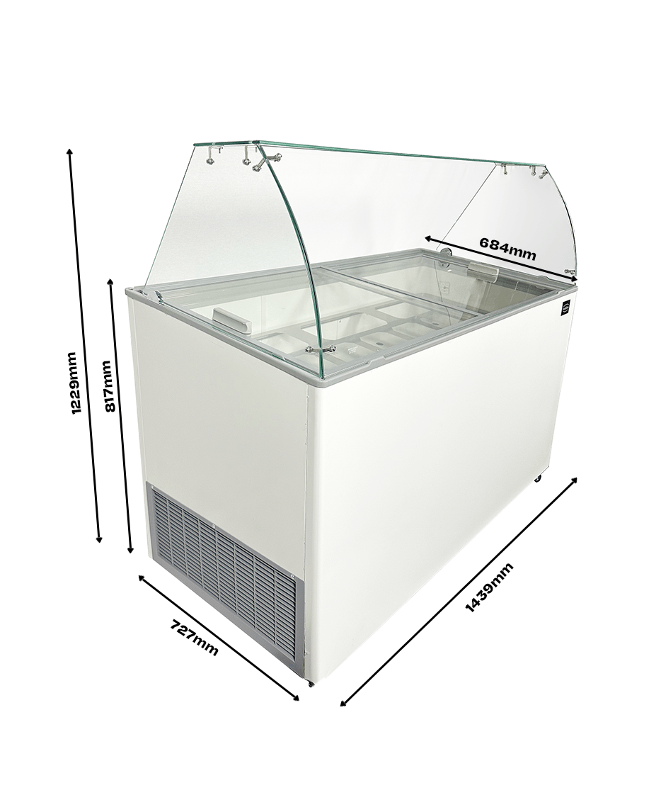 Deze stijlvolle vitrine is de ideale keuze voor het presenteren en bewaren van schepijs in ijssalons, horecagelegenheden of tijdens evenementen. De statische koeling zorgt voor een constante temperatuur, terwijl het handmatig ontdooien het onderhoud eenvoudig maakt. De schepijsvitrine heeft plaats voor 10 bakken van 5 liter en de onderkoeling biedt extra opslagruimte. Het model is verrijdbaar, zodat je het flexibel kunt verplaatsen. Ook is de vitrine voorzien van schuifruitjes, wat de toegankelijkheid en het gebruiksgemak verder vergroot. Afmetingen: 1439x727x1229 mm (BxDxH) – Temperatuur: -24/-14ºC – Energieverbruik: 0,26 kW – Gewicht: 101 kg.