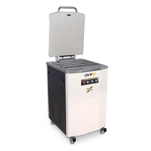 De Sinmag Europe Divo is een hydrolische deegverdeler met een rechthoekige kuip. Deze professionele hydrolische deeg verdeler is uiterst gebruiksvriendelijk en onderhoudsvriendelijk. De kuip van deze hydrolische verdeler is voorzien van roestvrijstalen ring en messen. Is uitgerust met een stille en zuinige motor. Motor en pomp zijn beschermd tegen mogelijk contact met stof en deeg. Is tevens voorzien van geremde zwenkwielen, veiligheidshendel, automatisch sluitsysteem voor deksel, automatische messenlift, drukvoeten in PVC.