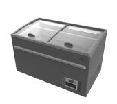 Deze vrieskist combineert een strak ontwerp met praktische functionaliteit. Voorzien van glazen schuifdeksels voor goede zichtbaarheid en gemakkelijke toegang, statische koeling, automatische ontdooiing en energiezuinige LED-verlichting. De digitale regelaar maakt het instellen van de juiste temperatuur eenvoudig, terwijl het ruime interieur van 530 liter zorgt voor maximale opslagcapaciteit. De afmetingen zijn 1450x850x870 mm (BxDxH) – verbruik 0,5 kW – temperatuurbereik -22/-18ºC – gewicht 90 kg.