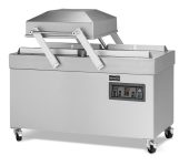 De Prime 240 van Combisteel is een industriële, verrijdbare dubbelkamer vacuümmachine die topprestaties levert in de zwaarste werkomgevingen. Dankzij een krachtige 63 m³/uur vacuümpomp, twee brede sealbalken van 620 mm (voor en achter) en een ruime roestvrijstalen vacuümkamer met vlakke werkplaat is deze machine perfect geschikt voor het efficiënt en hygiënisch verpakken van grote volumes voedsel in productieomgevingen, slagerijen of centrale keukens. Afmetingen: 1545x790x1090 mm (LxDxH) – Aansluiting: 400V – Vermogen: 3.3–4.5 kW – Vacuümcapaciteit: 63 m³/uur – Gewicht: 310 kg.