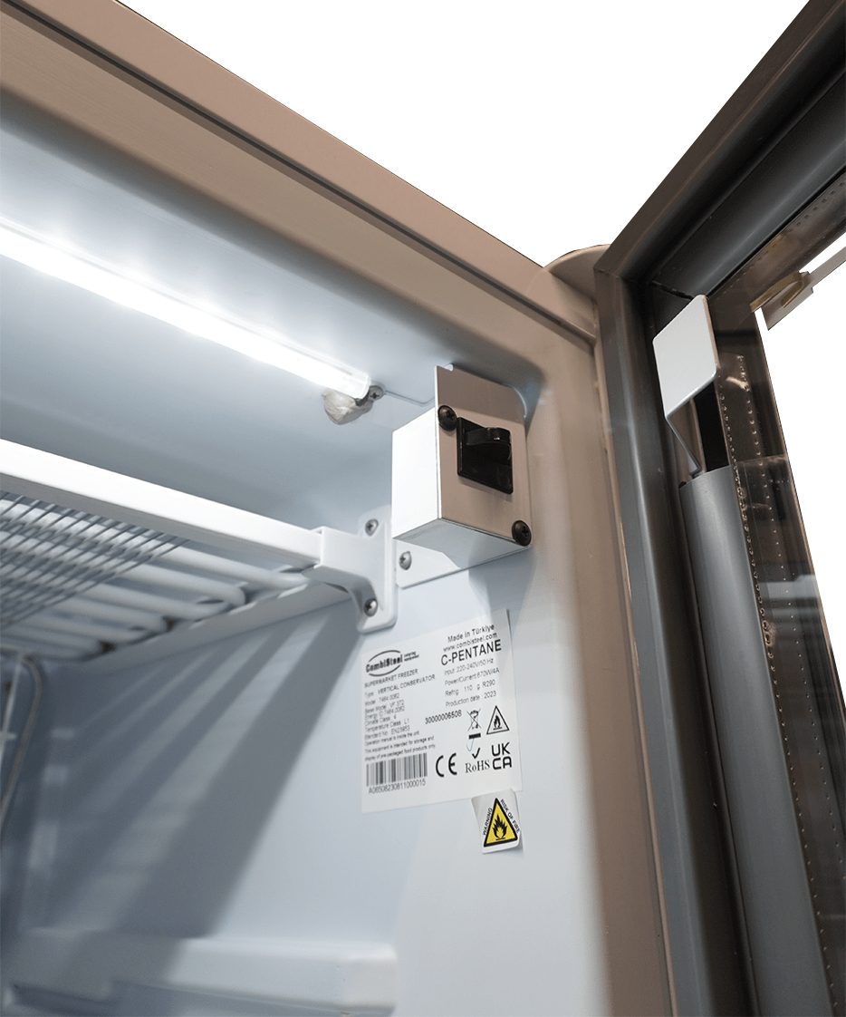 Deze vrieskast combineert overzicht, presentatie en optimale prestaties. Dankzij de transparante deur, LED-verlichting, ingebouwde lichtbak en deurverwarming blijft de inhoud altijd goed zichtbaar, terwijl de statische koeling zorgt voor een gelijkmatige bevriezing van je producten. De afmetingen zijn 640x670x1875 mm (BxDxH) – energieverbruik 0,25 kW – inhoud 382 liter – temperatuur -18/-24ºC – gewicht 106 kg.