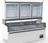 Deze innovatieve vrieskist bestaat uit twee afzonderlijke compartimenten: bovenop bevindt zich een geventileerde vrieskast, terwijl de onderzijde een statische vrieskist bevat. De geventileerde bovenste vrieskast zorgt voor een snelle en efficiënte luchtcirculatie, terwijl de statische koeling aan de onderzijde een betrouwbare en gelijkmatige bevriezing garandeert. De glazen deuren aan de bovenzijde geven direct zicht op de inhoud, met al je producten op ooghoogte. Dankzij de automatische ontdooiing wordt het onderhoud vergemakkelijkt. De energiezuinige LED-verlichting zorgt voor een mooie product presentatie, terwijl het design perfect past in een moderne inrichting. Afmetingen: 2104x890x2110 mm (LxDxH) – verbruik: 1.29 kW – inhoud: 546 / 900 liter – temperatuur: -18°C – gewicht: 391 kg.