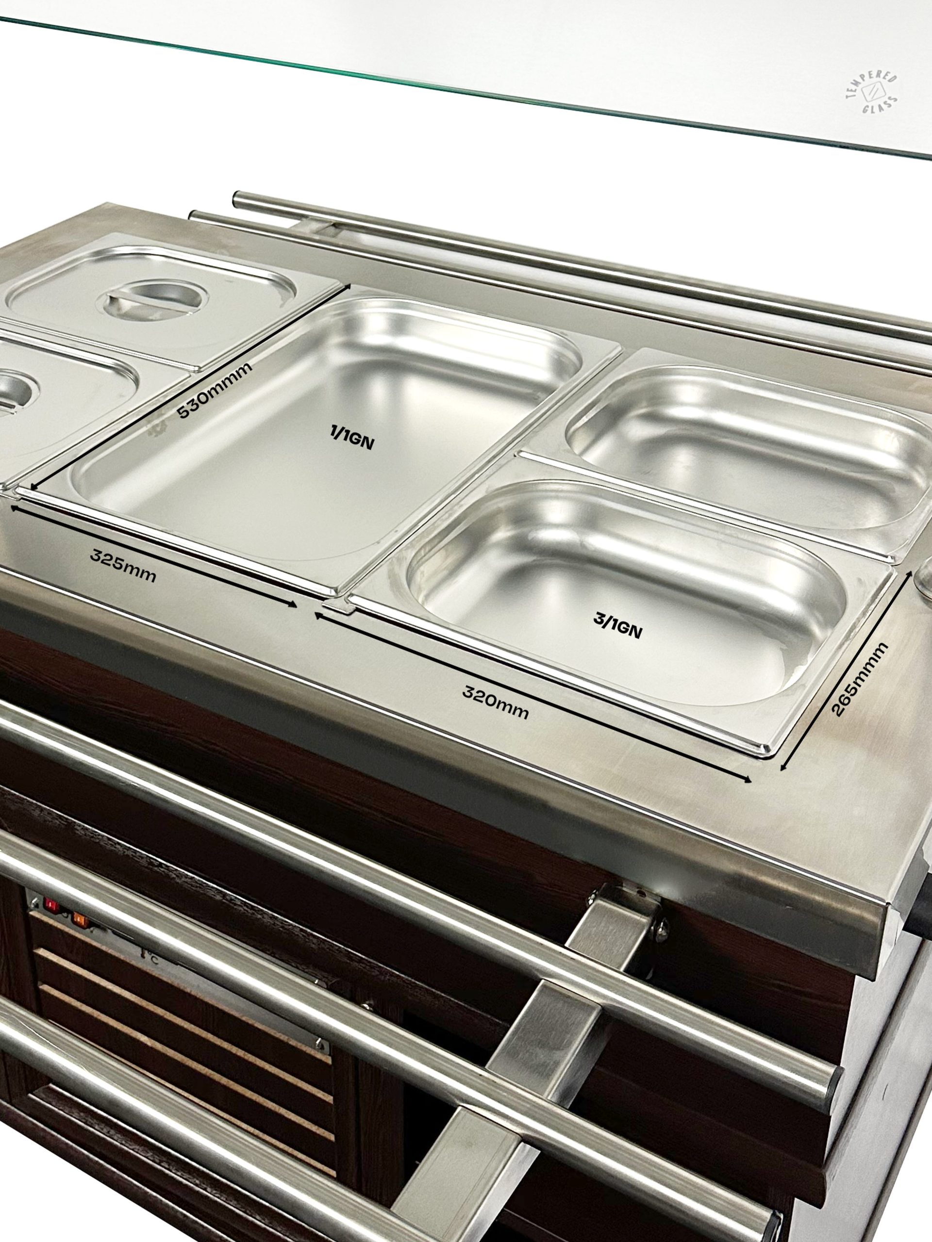 - Ruim GN 3/1-formaat – biedt voldoende ruimte voor meerdere gastronormbakken.