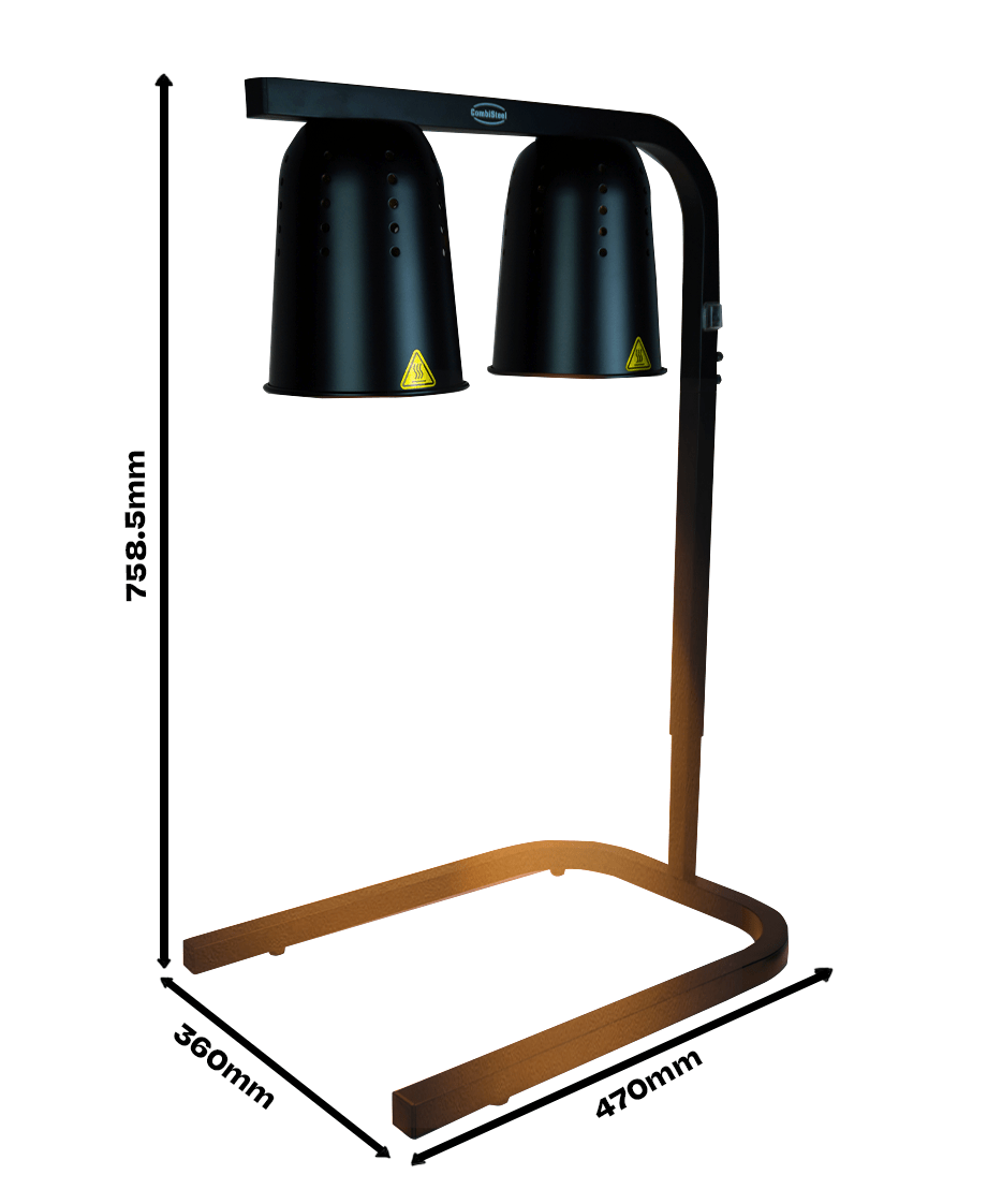 Maak kennis met onze warmhoudlamp, een veelzijdige toevoeging aan elke professionele keuken en cateringomgeving. Compact en robuust dankzij zijn aluminium constructie, met twee lampen voor optimale warmteverdeling. Perfect voor nauwkeurige temperatuurregeling van voorgerechten tot desserts, met behoud van versheid en smaak. De afmetingen zijn 453x365x590mm (LxBxH) – verbruik 0.5 kW – gewicht 1.8 kg.