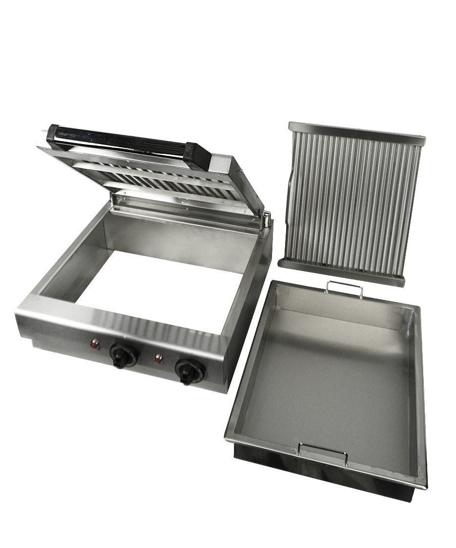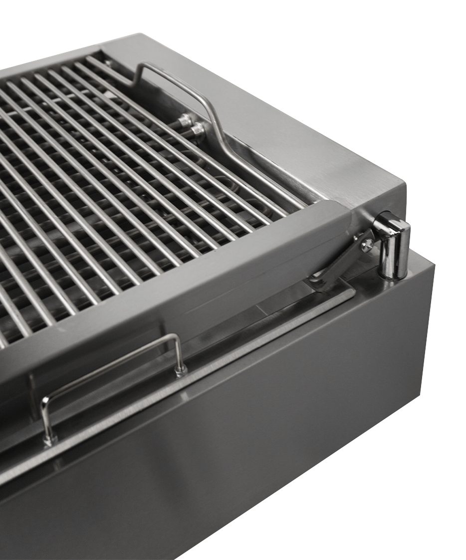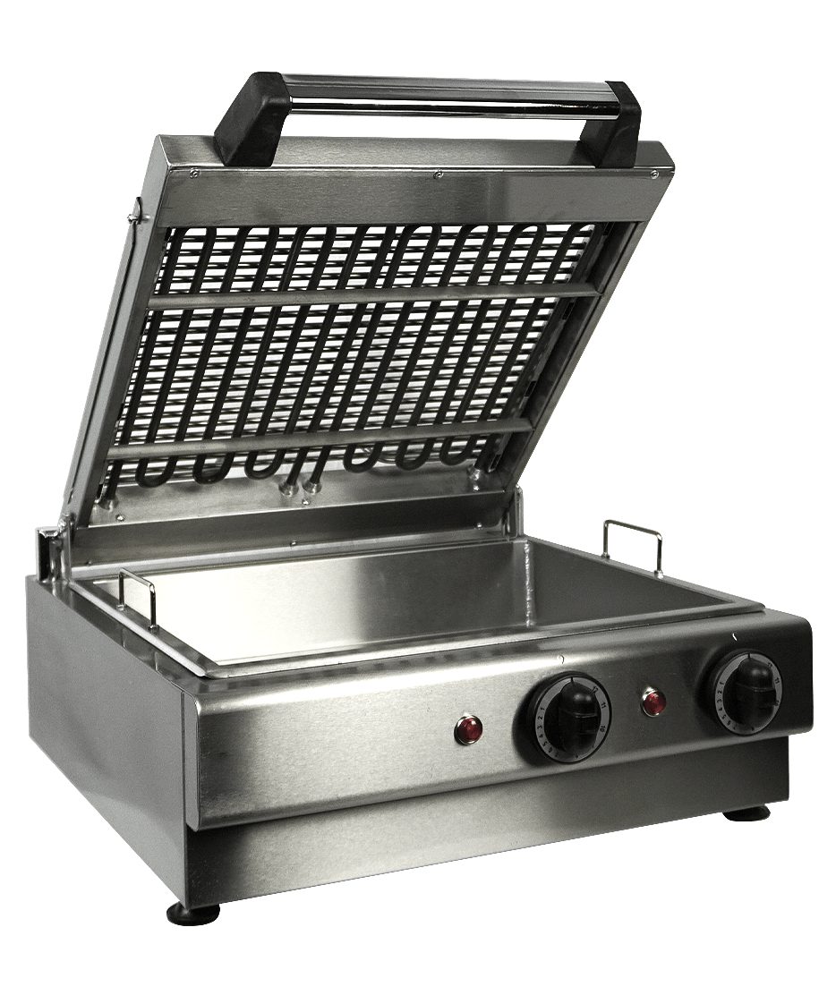 Met een royale grillplaat van 410×340 mm en een geïntegreerde waterbak onder de plaat wordt rookvorming verminderd en blijft het voedsel sappig. Dit zorgt voor een gezondere bereiding én een aangenamere werkomgeving.