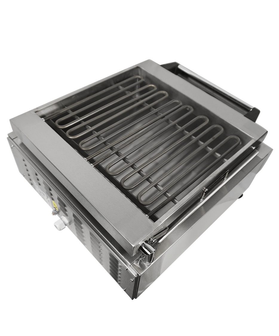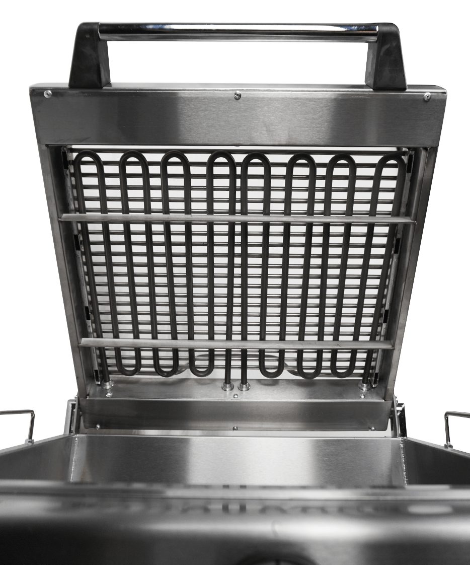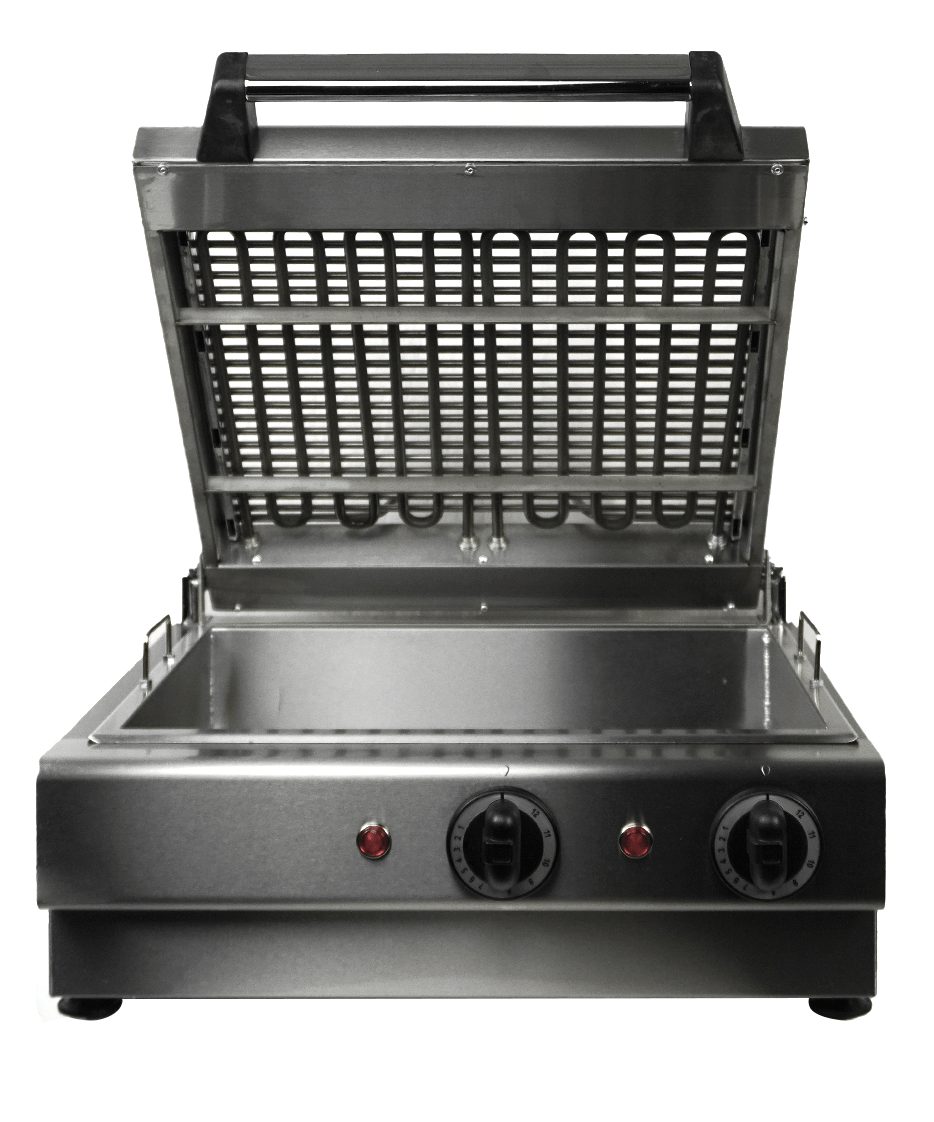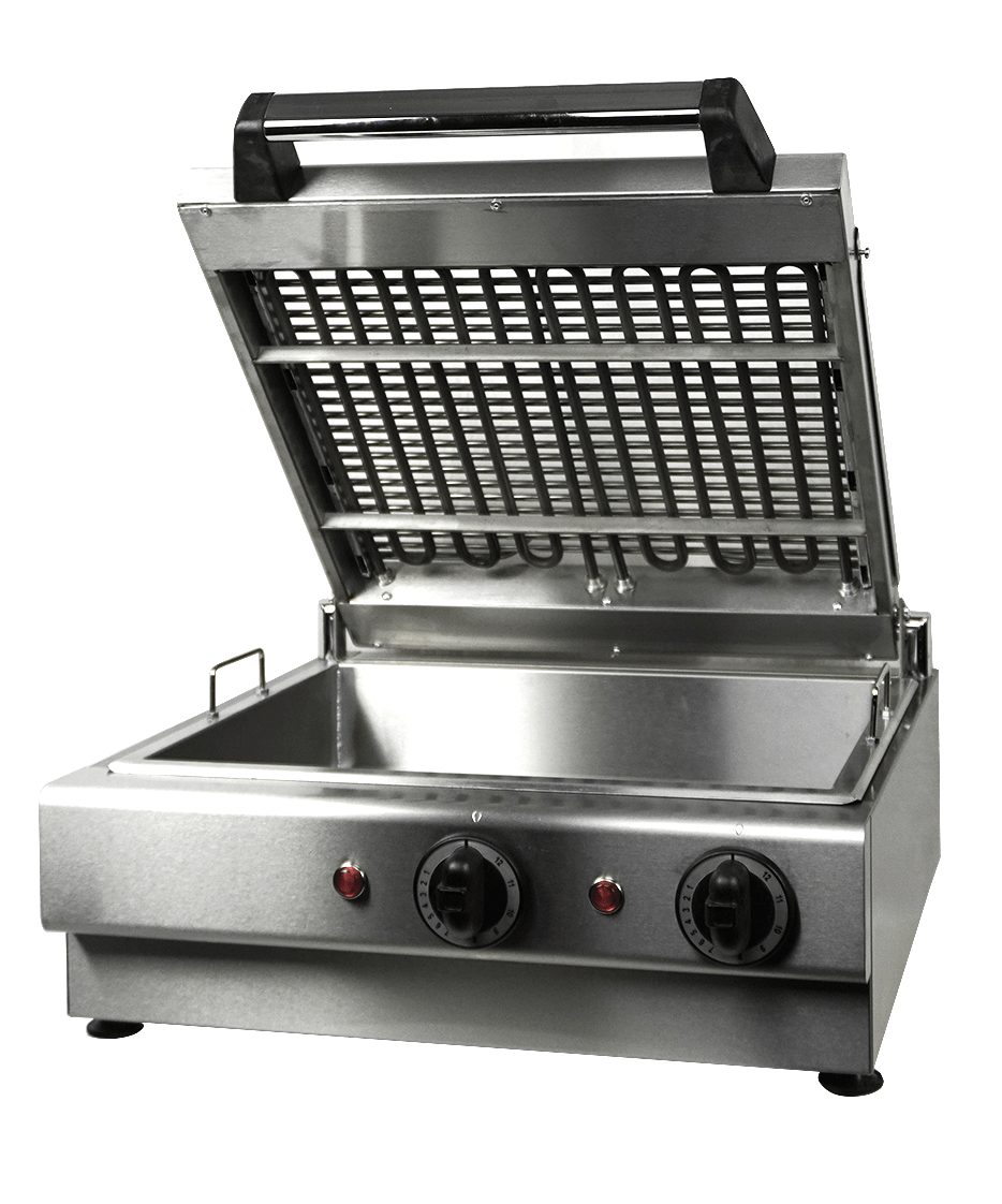Deze robuuste watergrill is ontworpen voor professioneel gebruik in horecaomgevingen waar snelheid, hygiëne en smaak belangrijk zijn. Dankzij het roestvrijstalen ontwerp en het krachtige 5 kW verwarmingselement bereikt de grill snel de juiste temperatuur en blijft hij constant presteren – ideaal voor vlees, vis en groenten.